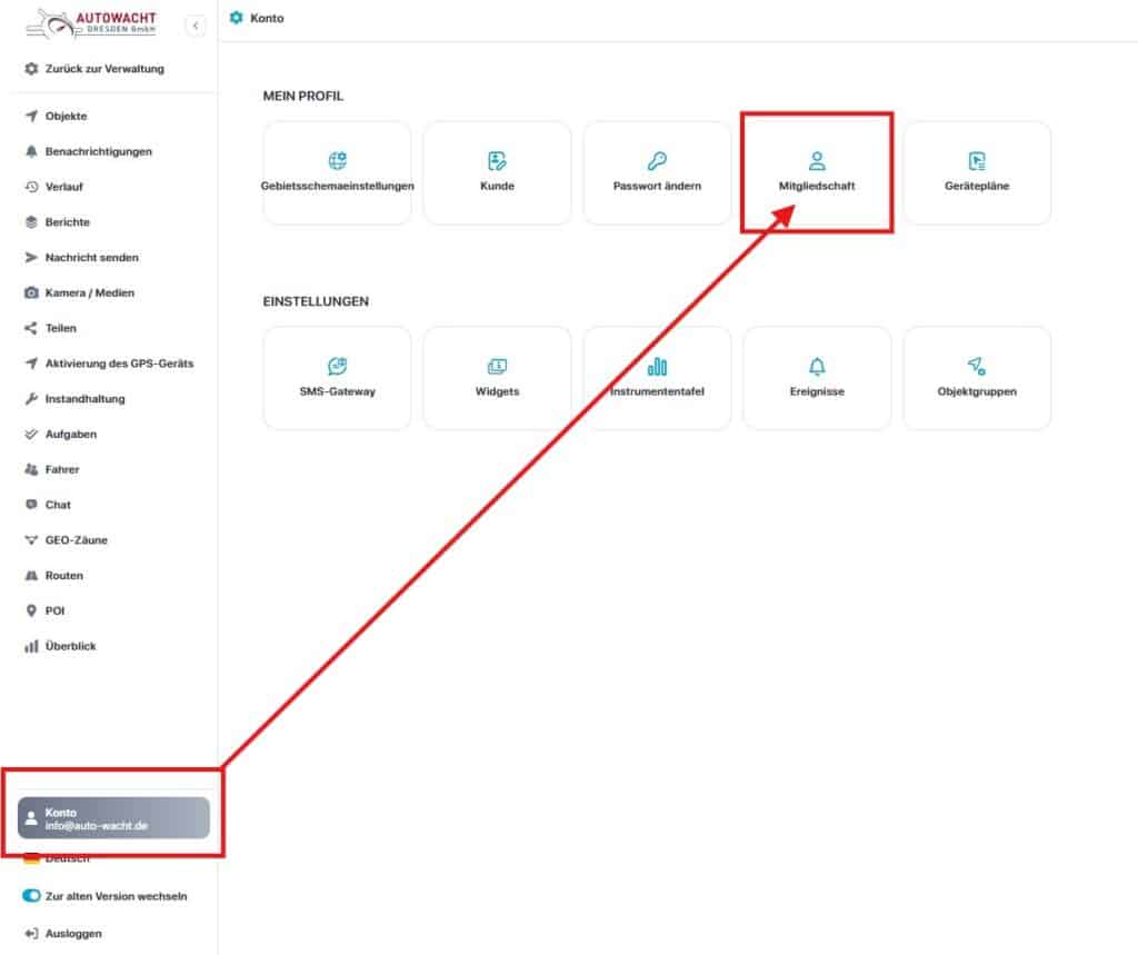 – es öffnet sich ein Untermenü, dort wählen Sie bitte „Mitgliedschaft“ aus