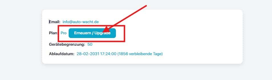 Wenn Sie mehrere Tracker in unserem Shop gekauft haben, werden diese für die ersten 14 Tage in einem kostenlosen Testaccount – mit der entsprechenden Lizenzierung – eingebunden. Wenn Sie sich umgeschaut haben und weiter mehrere Tracker in einem Account abbilden wollen, aktivieren Sie bitte die entsprechende Lizenz für 12 Monate.