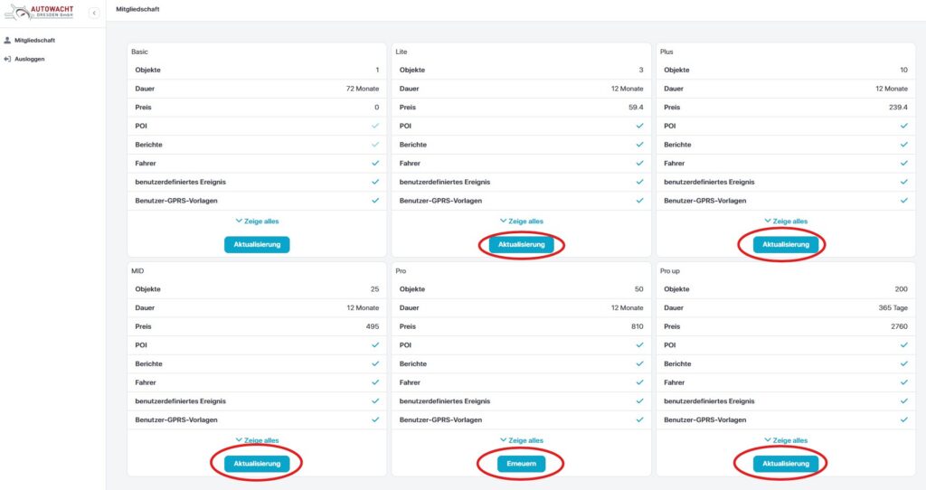 Grundsätzlich bietet die Autowacht Dresden GmbH – zu jedem ihrer Tracker – einen kostenlosen Zugang zum Ortungsportal. Die Funktionalitäten sind hier jedoch beschränkt. Wenn Sie mehrere Tracker über einen Account abrufen und steuern wollen oder ein mehr an Funktionen für Ihren Account wünschen, können Sie jederzeit Ihr Lizenz-Modell anpassen bzw. wechseln. Zunächst erkundigen Sie sich über die Umfänglichkeit der Funktionalitäten des jeweiligen Lizenz-Modells.