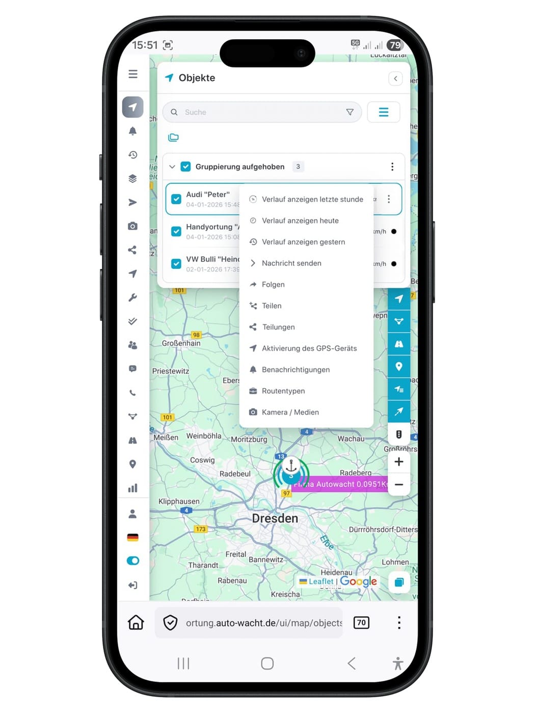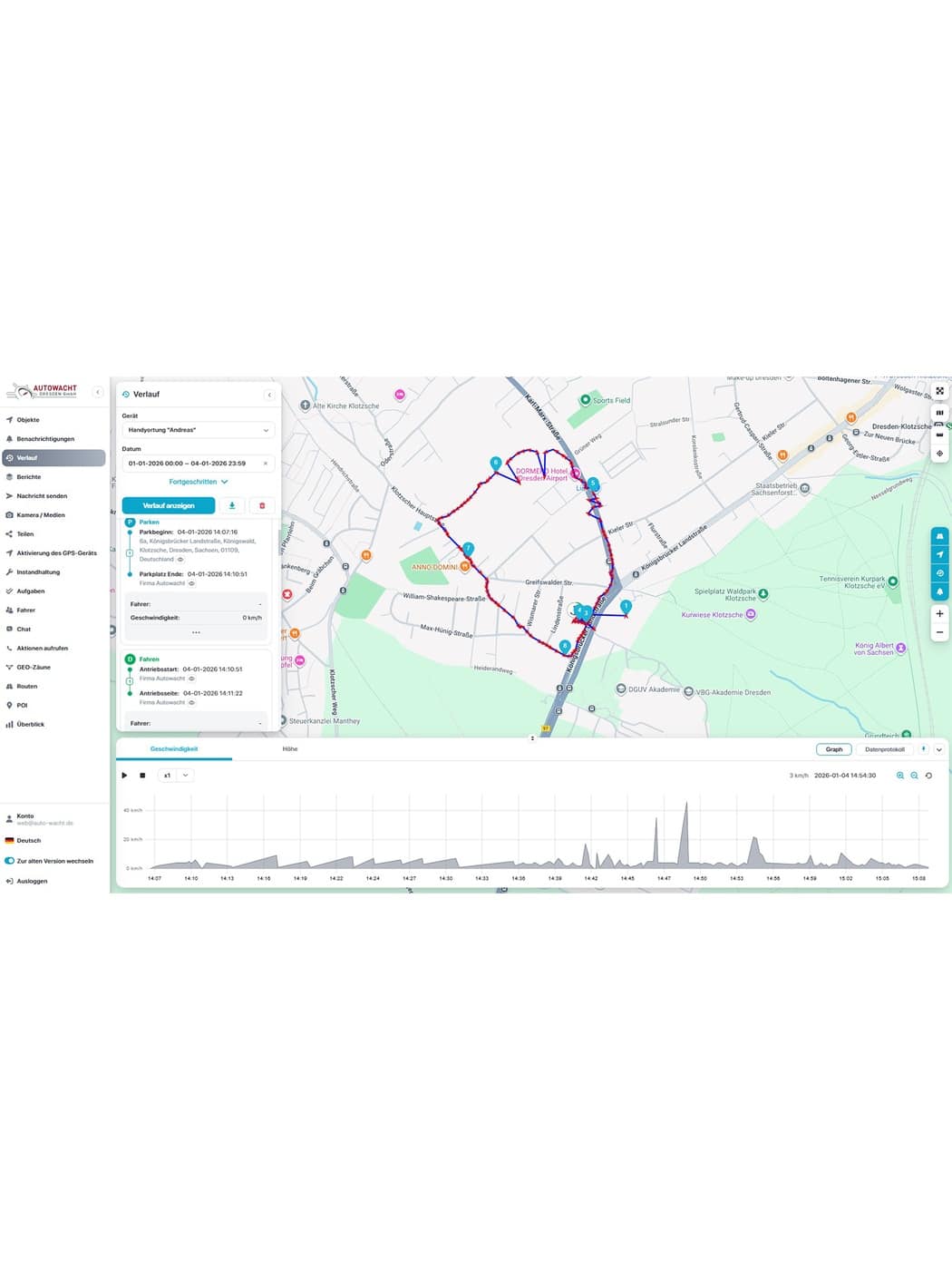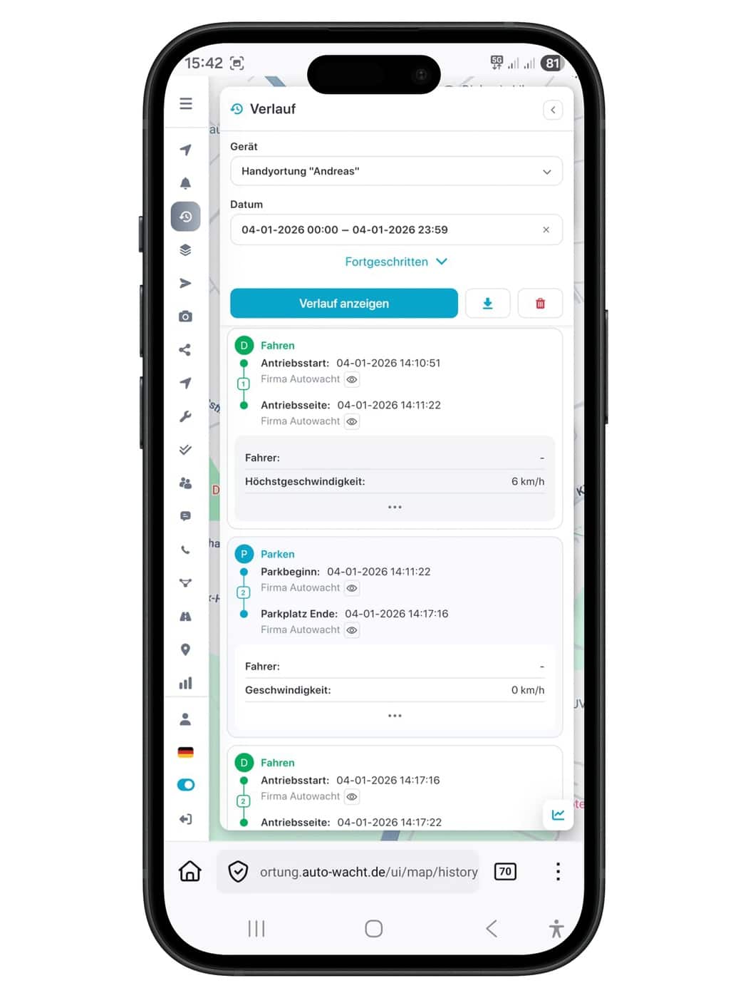 • Live-Ortung, Historie und Alarmierungsoptionen