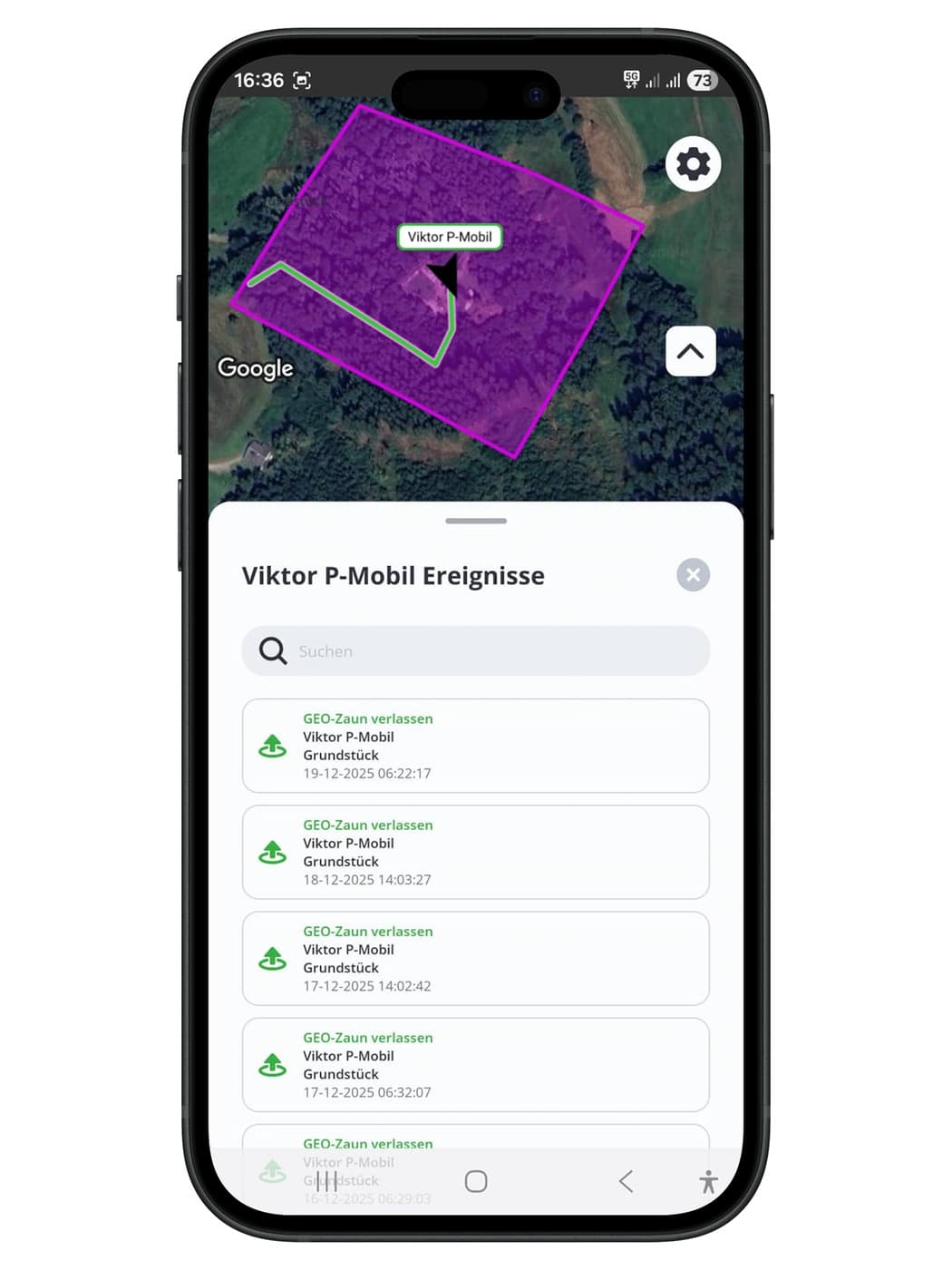 • Live-Ortung, Historie und verschiedene Alarmoptionen (Vibration, Geschwindigkeit, Batterie u.a.)