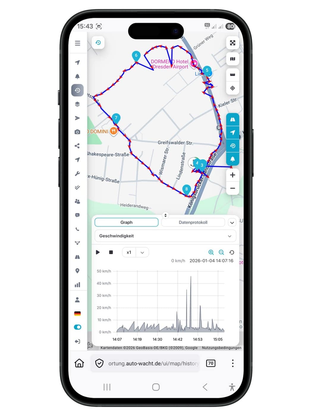 Der Tracker kann parallel über die Ortungsplattform/App und per SMS geortet werden. Die Standortübermittlung per SMS erfolgt als direkter Google-Link.