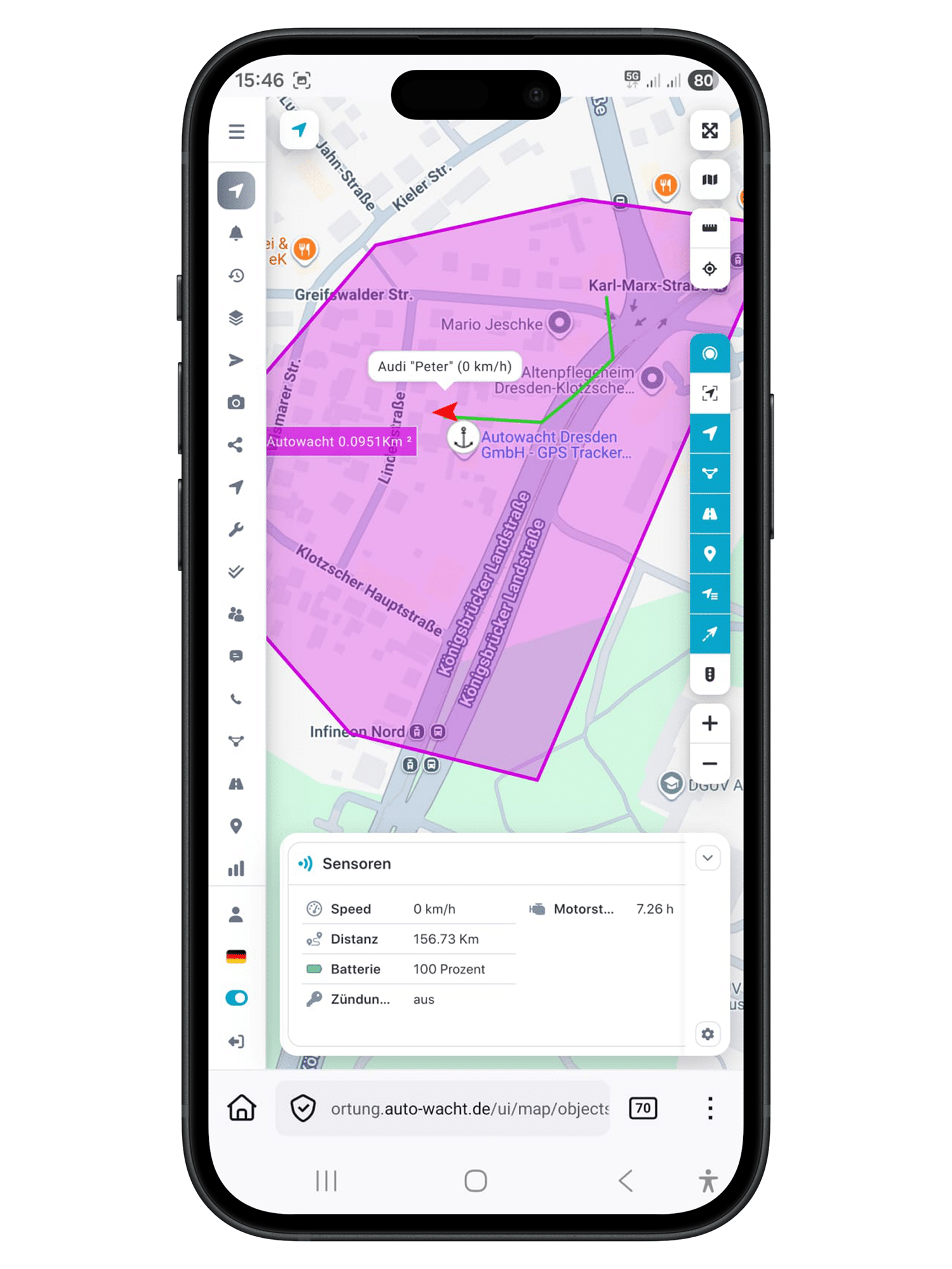 Die Autowacht Dresden GmbH hat alle nötigen Konfigurationen zur Einbindung in die Ortungsplattform durchgeführt. Sie müssen den GPS-Tracker nur an einen Dauerplus anklemmen und schon wird dieser automatisch starten und nach wenigen Sekunden auf der Ortungsplattform erscheinen.